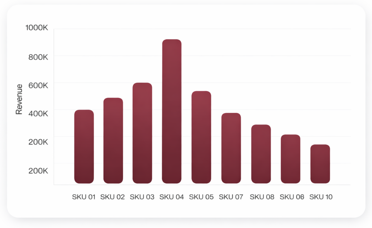 Analyzing SKU performance allows leadership teams to identify which products are driving revenue, which are underperforming, and where inventory exposure exists.