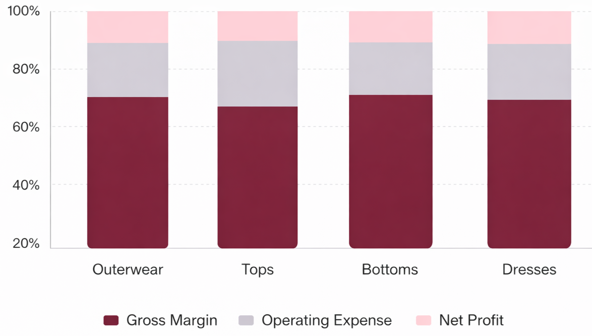 Category-level analysis helps identify where production costs, supplier pricing, or discounting practices are compressing margins.